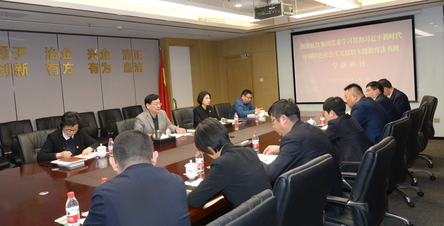 4月21日,河南航投集團(tuán)黨委理論中心組召開(kāi)擴(kuò)大會(huì)議,開(kāi)展學(xué)習(xí)貫徹習(xí)近平新時(shí)代中國(guó)特色社會(huì)主義思想主題教育讀書(shū)班專(zhuān)題研討。集團(tuán)黨委書(shū)記、董事長(zhǎng)張明超主持會(huì)議并講話(huà),集團(tuán)領(lǐng)導(dǎo)班子成員和總部中層管理人員代表參加。