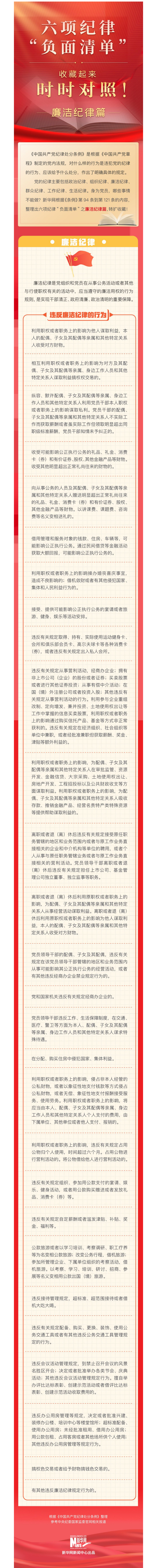 【學(xué)條例 守黨紀(jì)】六項紀(jì)律“負(fù)面清單” | 廉潔紀(jì)律篇