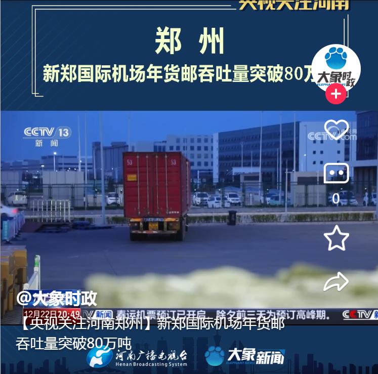 【央視關(guān)注河南】新鄭國際機場年貨郵吞吐量突破80萬噸