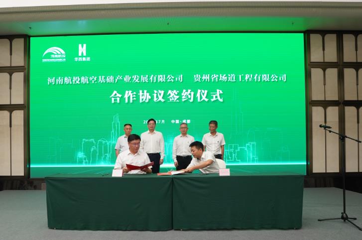 7月16日,河南民航發(fā)展投資有限公司(簡稱河南航投)與四川華西集團有限公司(簡稱四川華西)在成都舉行了簡短而熱烈的簽約儀式,兩家跨省國企約定,在民航產(chǎn)業(yè)展開全面合作。河南航投黨委書記、董事長張明超,黨委副書記、總經(jīng)理、副董事長劉建葆,四川華西黨委書記、董事長楊斌,黨委副書記、總經(jīng)理、副董事長馬林出席。張明超、楊斌分別致辭,劉建葆、馬林代表雙方簽訂《戰(zhàn)略合作協(xié)議》,河南航投基礎產(chǎn)業(yè)公司董事長趙楠和貴州場道公司執(zhí)行董事劉國呈代表子公司簽訂《合資合作協(xié)議》。