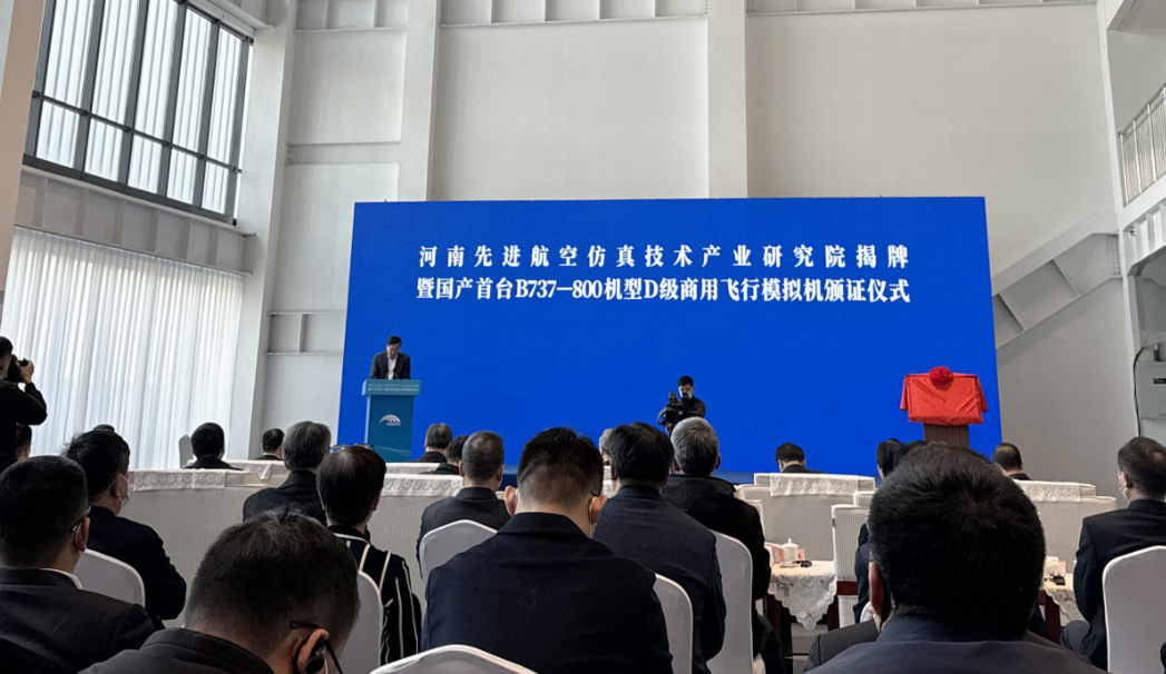 11月26日,河南先進航空仿真技術產(chǎn)業(yè)研究院揭牌暨國產(chǎn)首臺B737-800機型D級商用飛行模擬機頒證儀式在河南航投航空培訓中心舉行。省委書記樓陽生出席并講話。樓陽生為河南先進航空仿真技術產(chǎn)業(yè)研究院揭牌。中國工程院院士趙沁平受聘擔任研究院專家技術委員會主任。中國商用飛機有限責任公司黨委書記、董事長賀東風,省領導孫守剛、陳星、安偉、劉尚進出席。